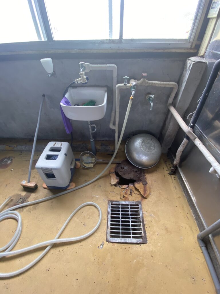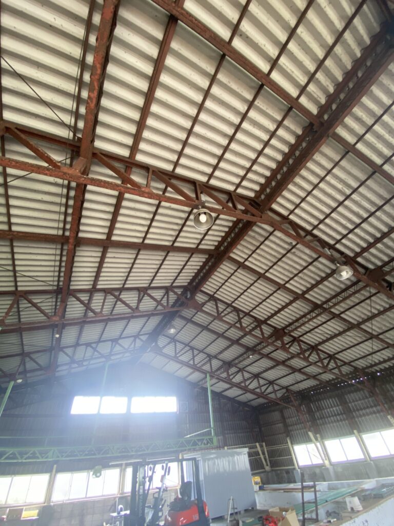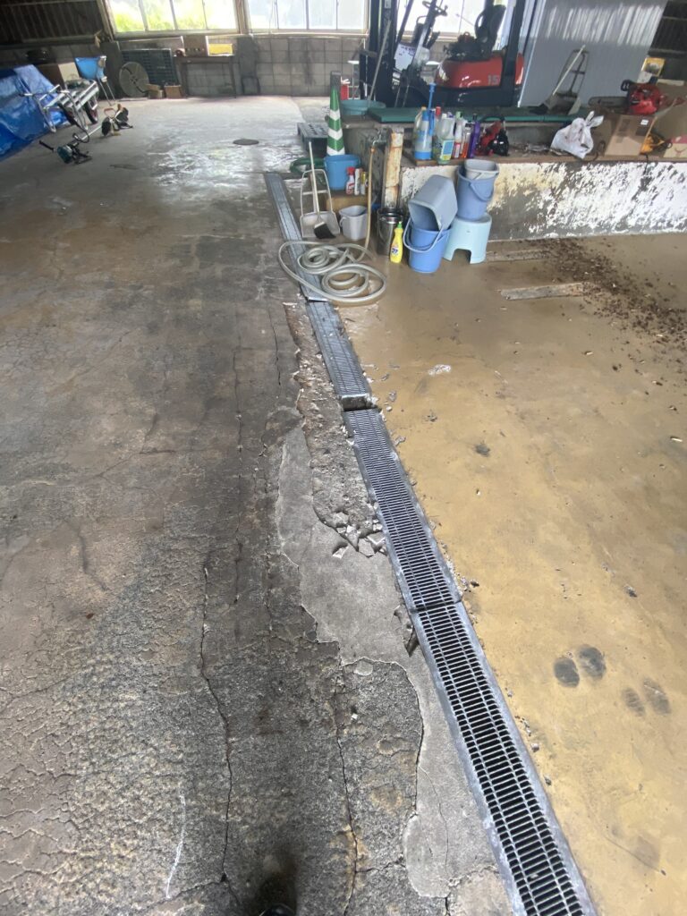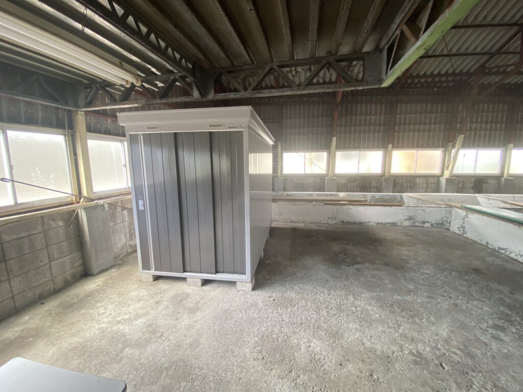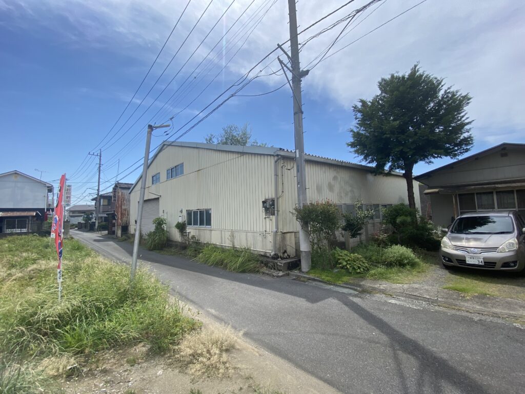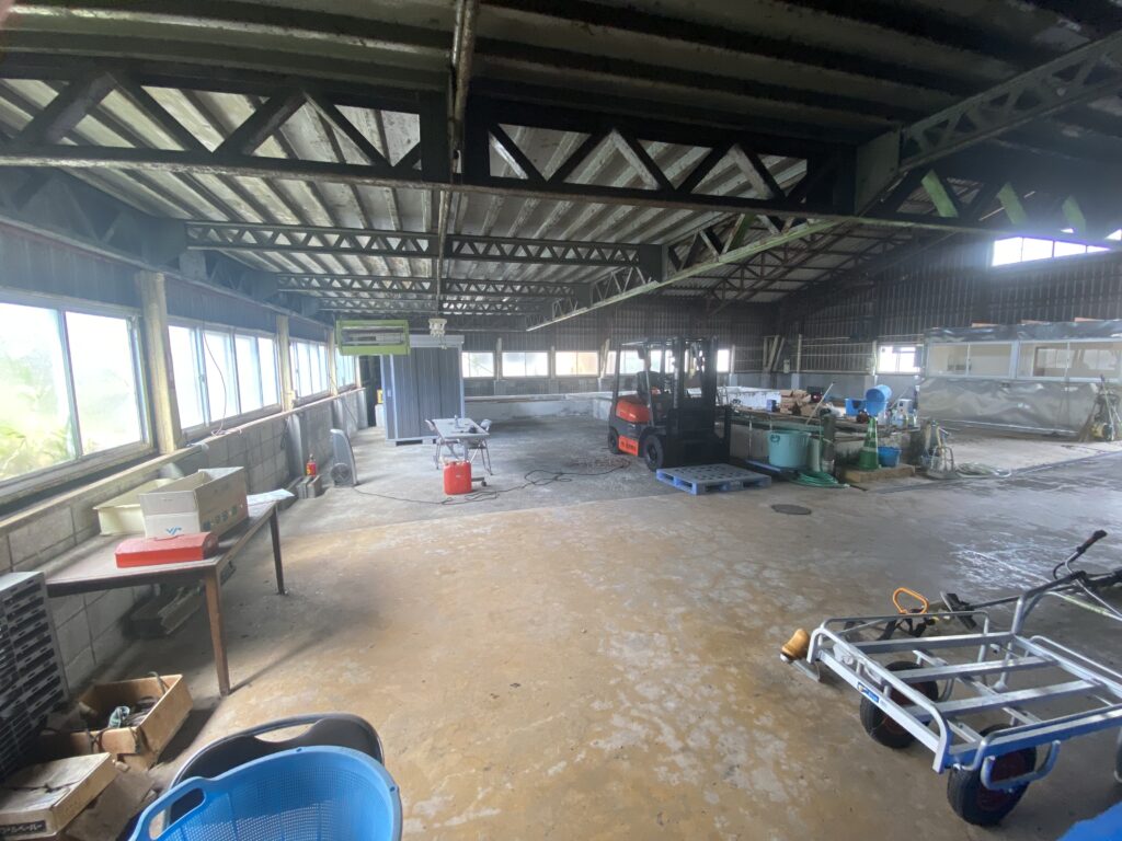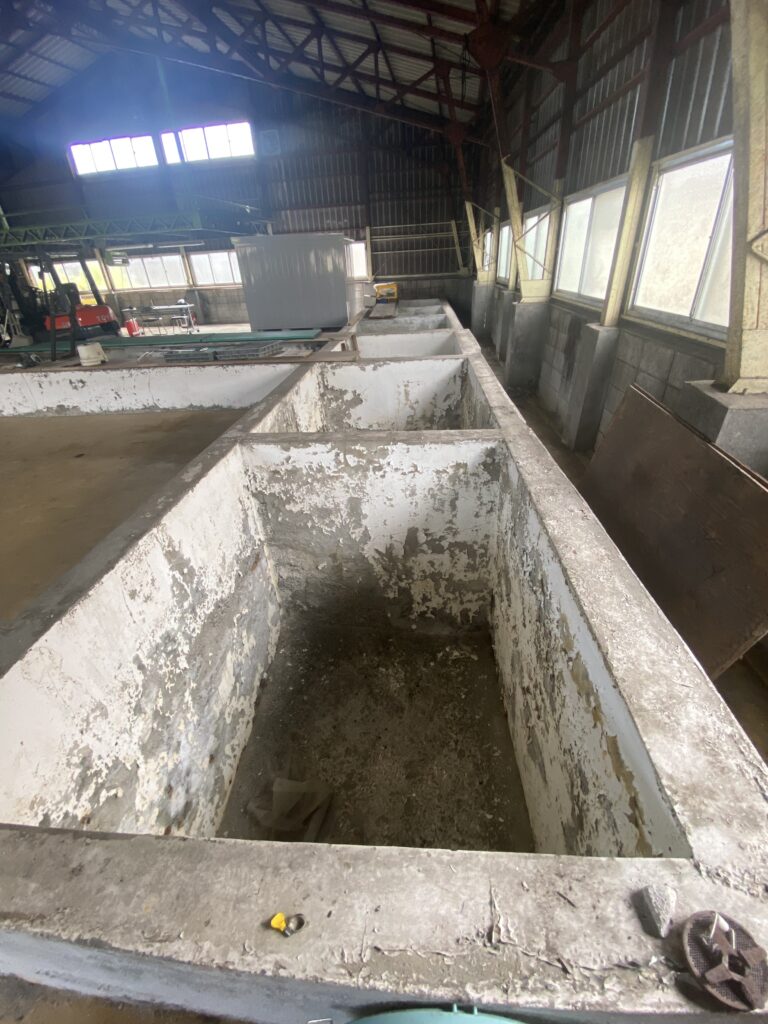 桐生市三吉町、元漬物工場。床に複数の槽あり。電動シャッター・休憩室付き。用途に応じた改装もご相談可能です。